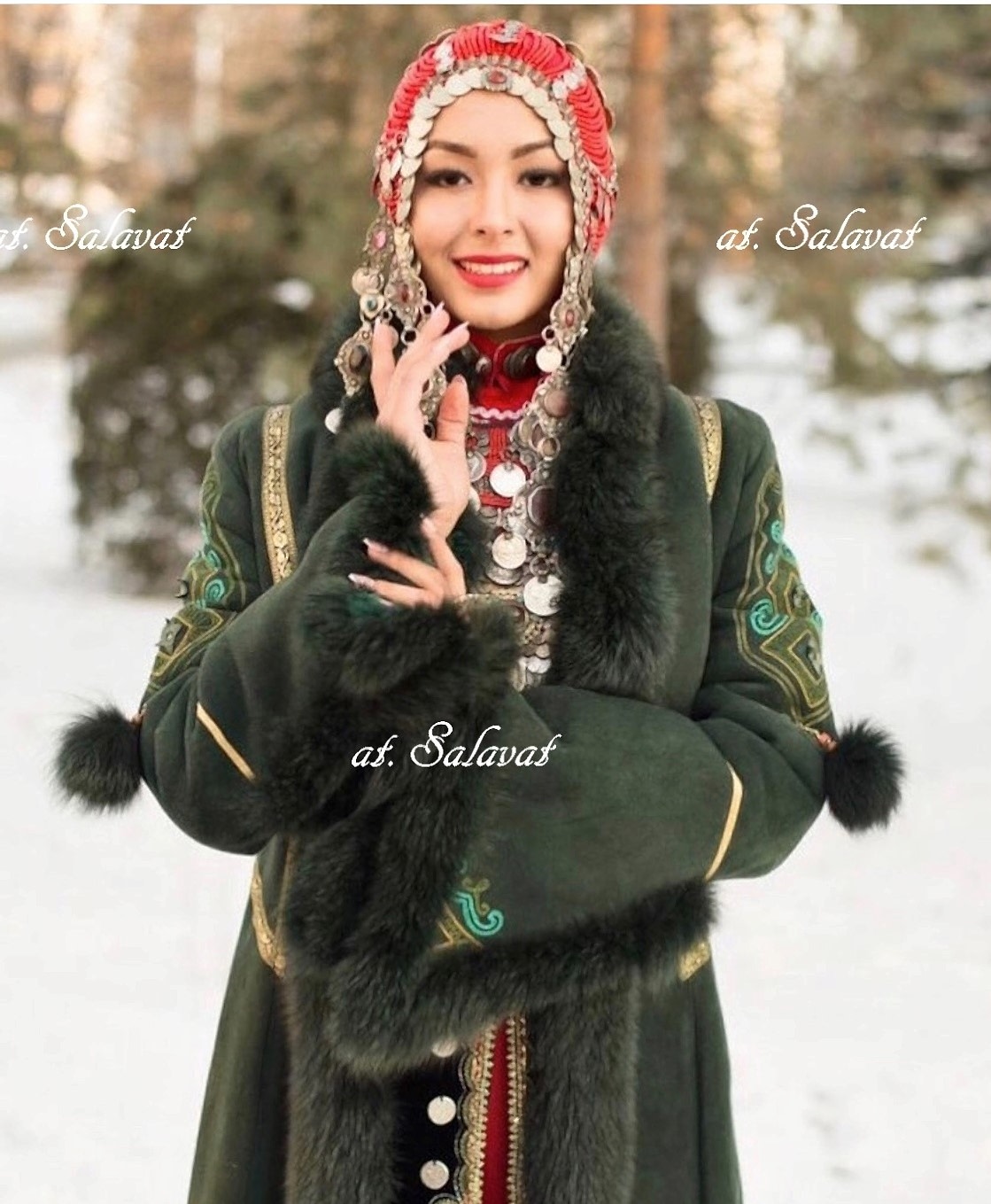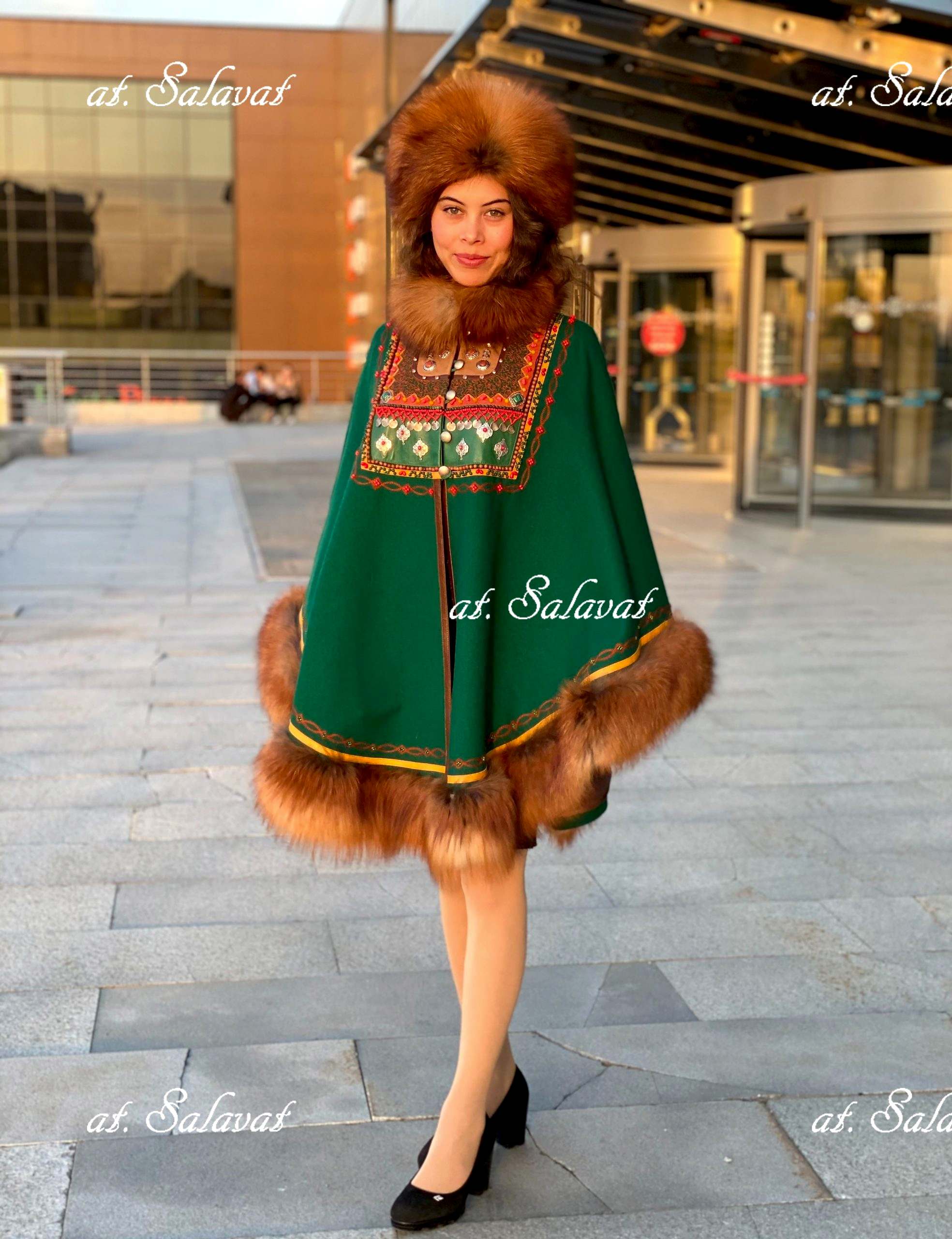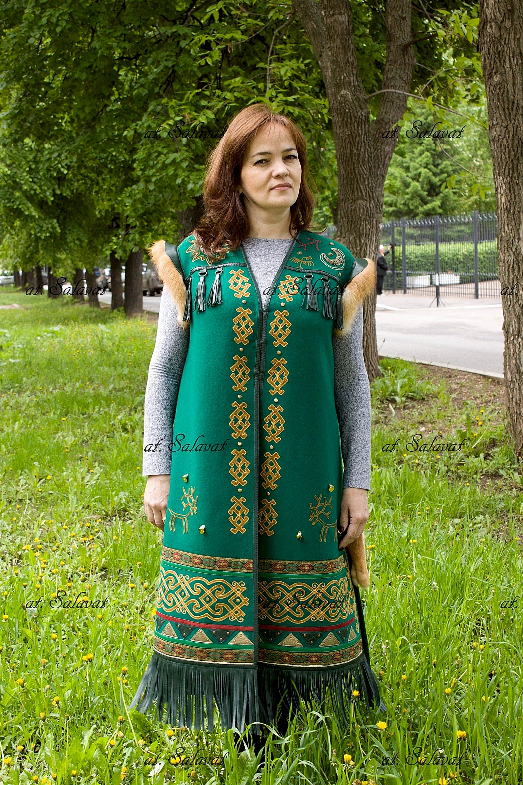 РаспроданоЕлян башкирский с орнаментом из зеленого английского Pin Up