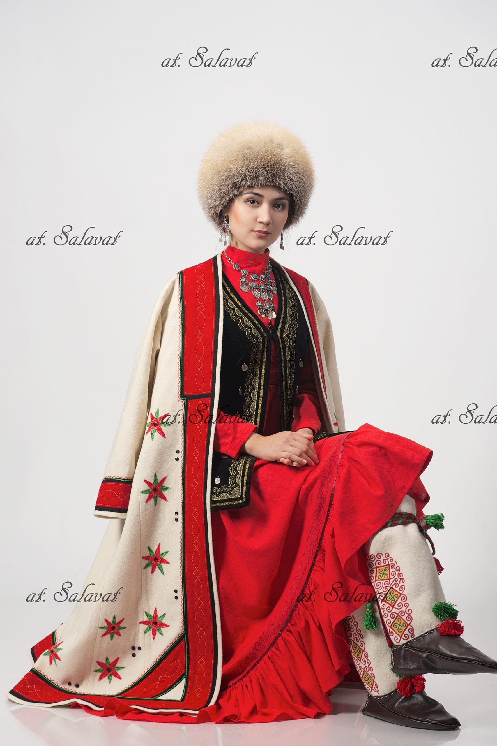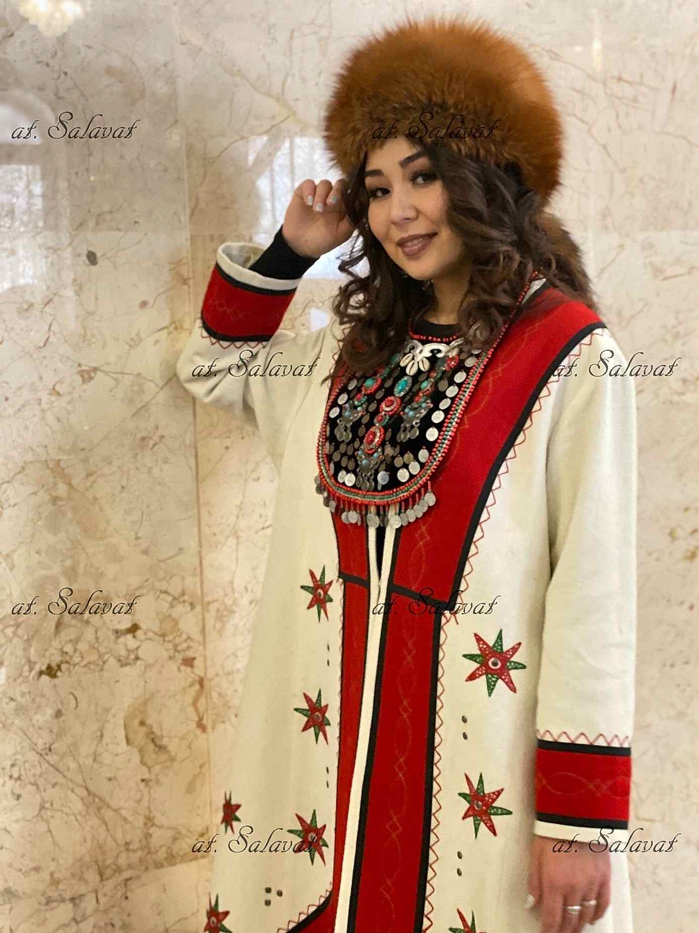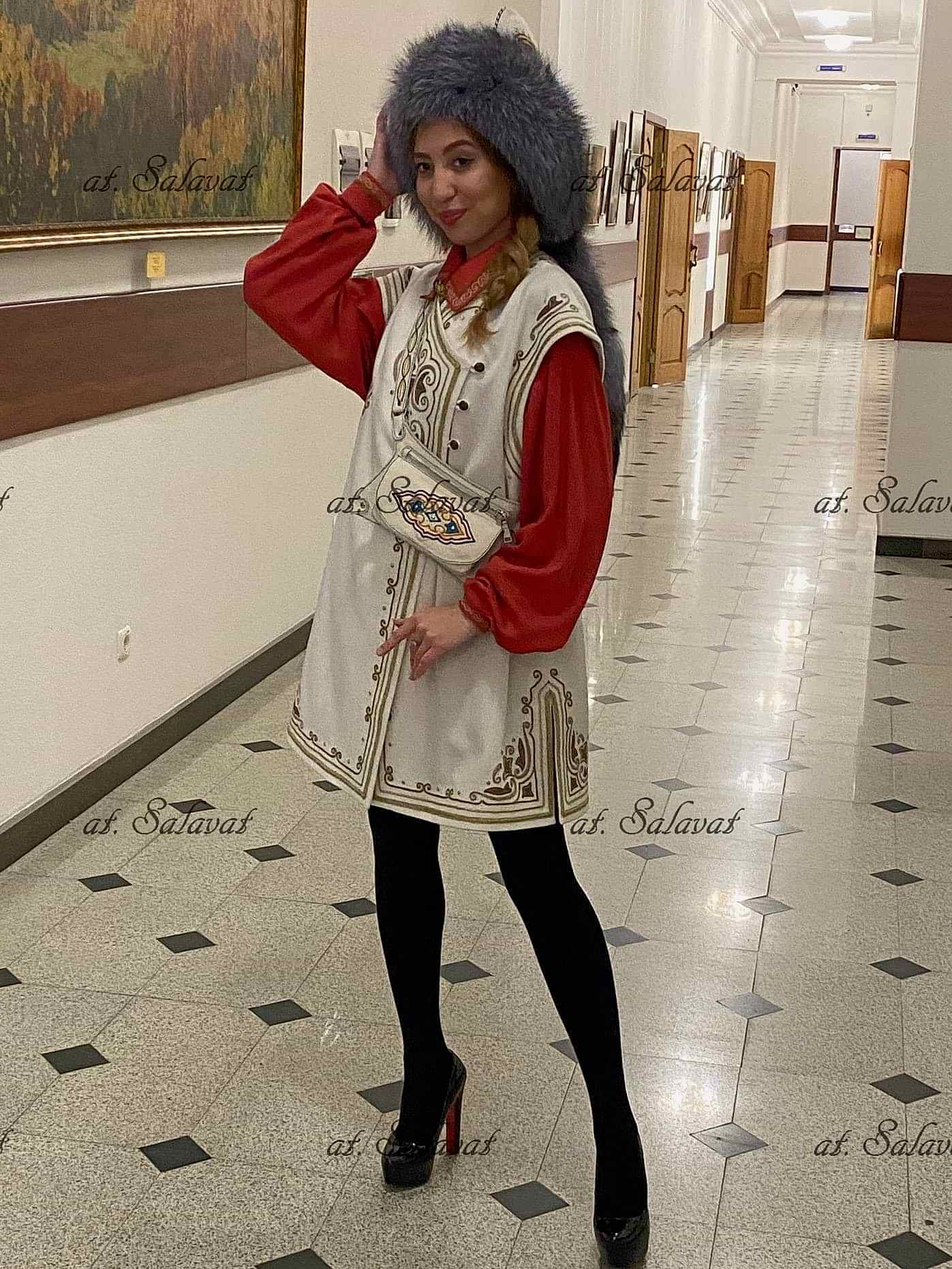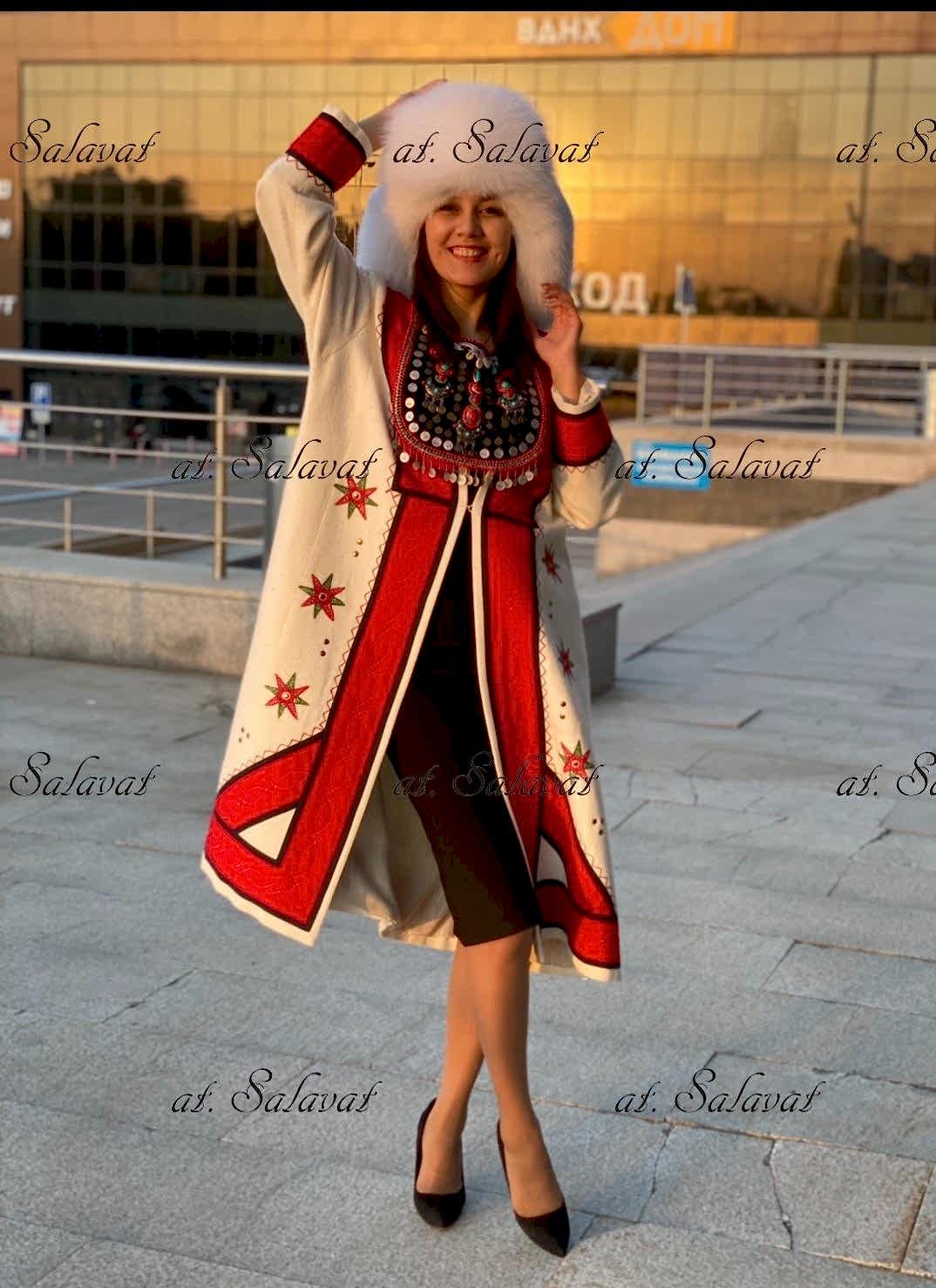 РаспроданоPin Up башкирский с орнаментом из белого английского сукна