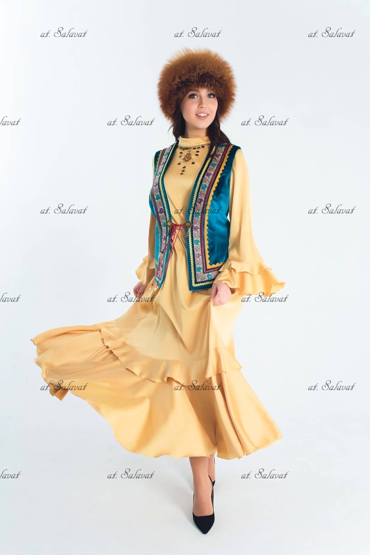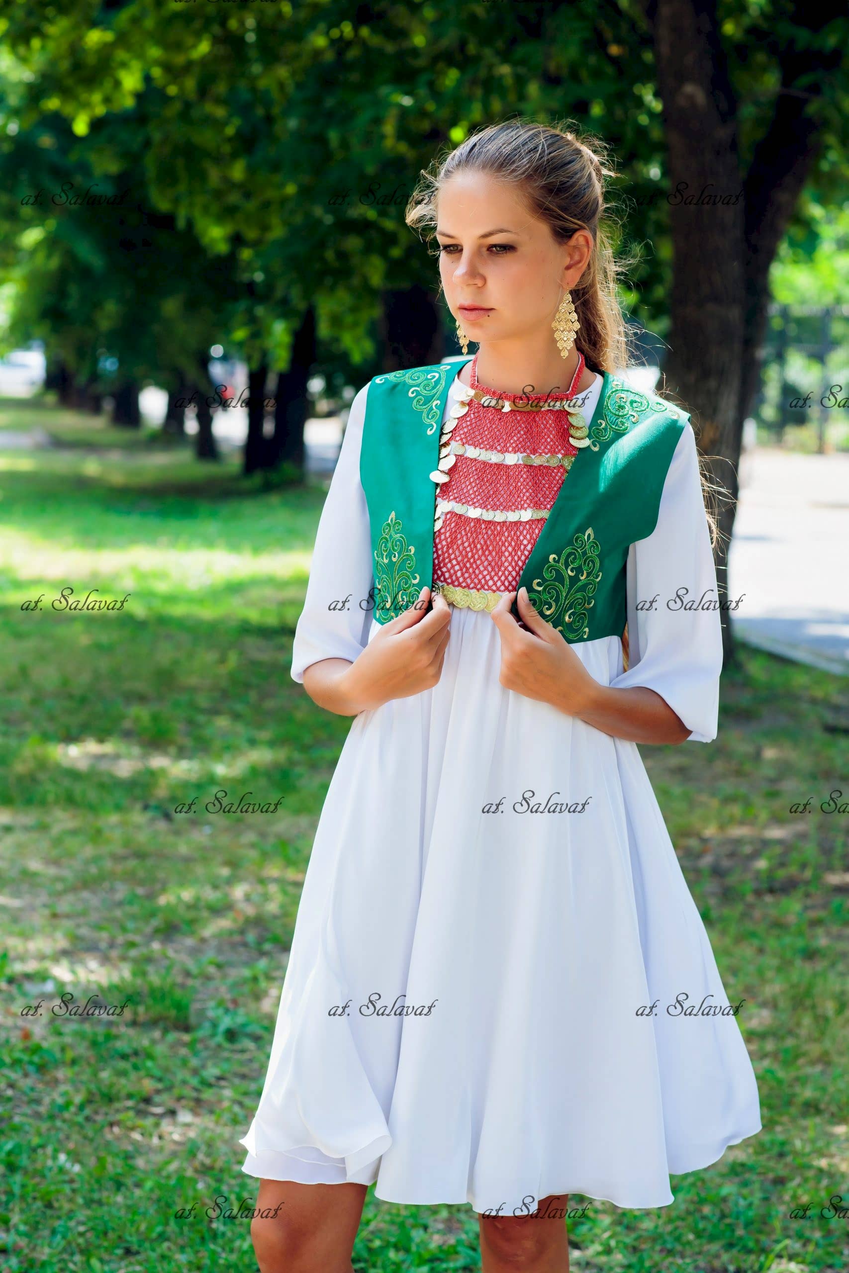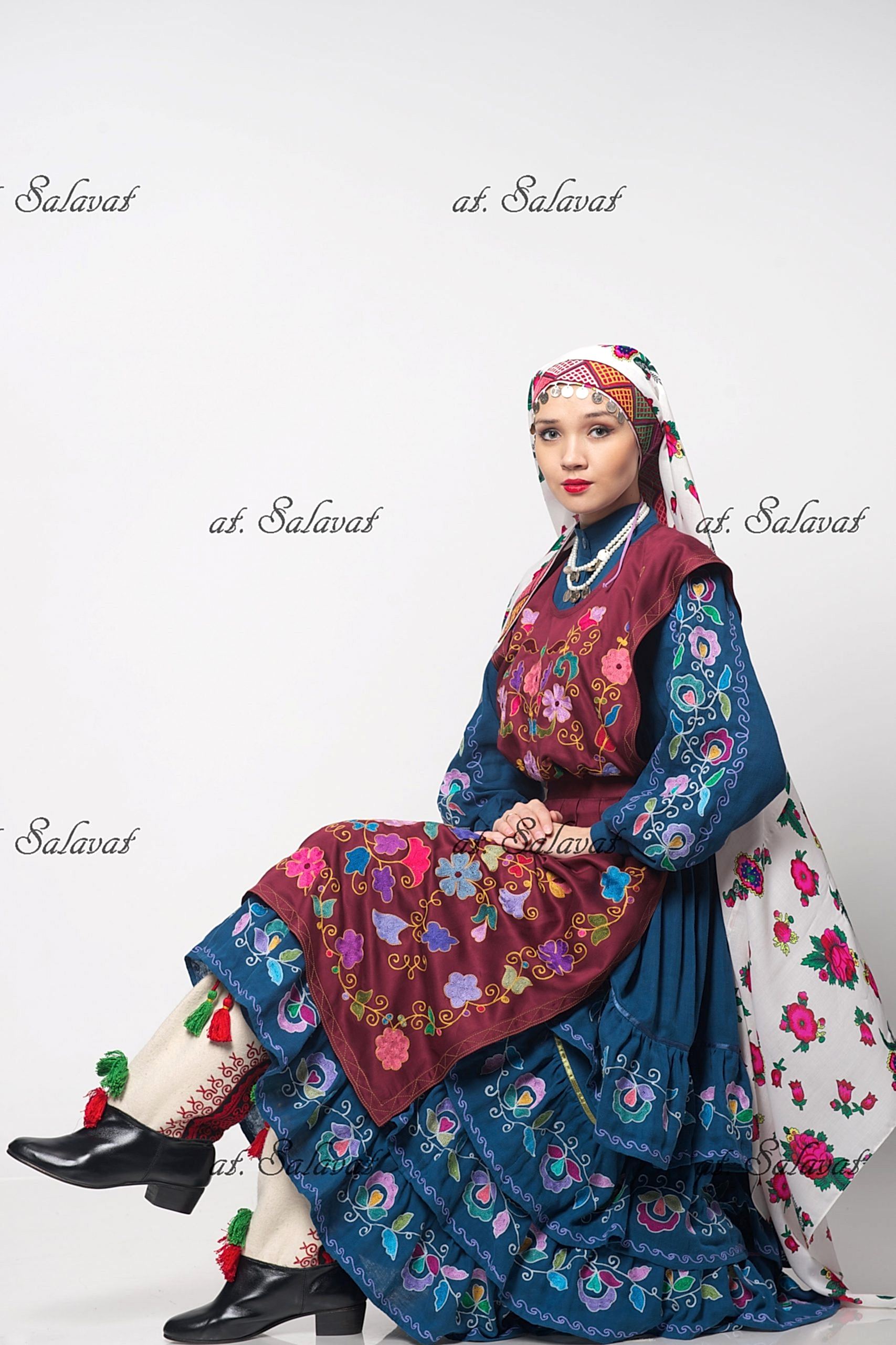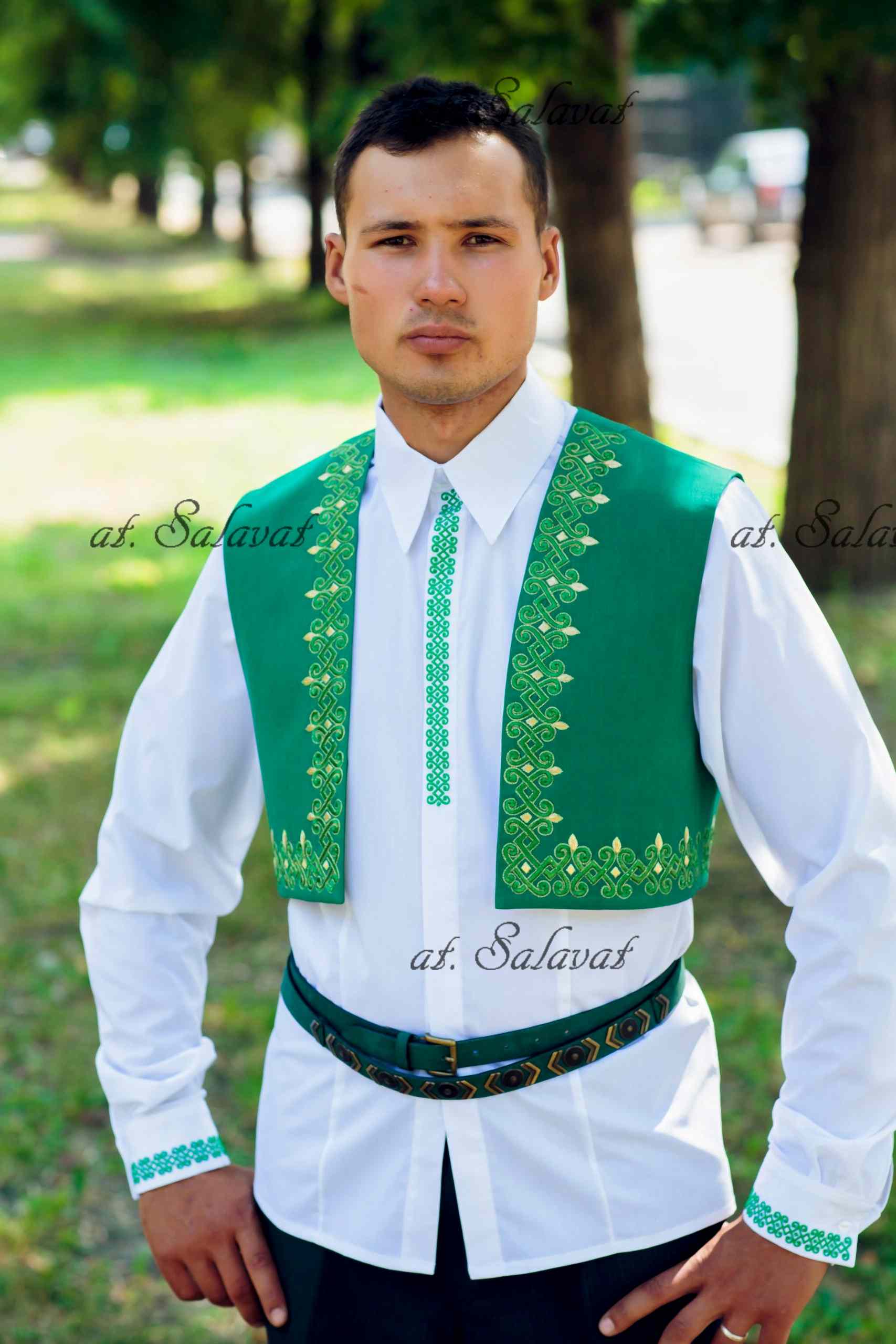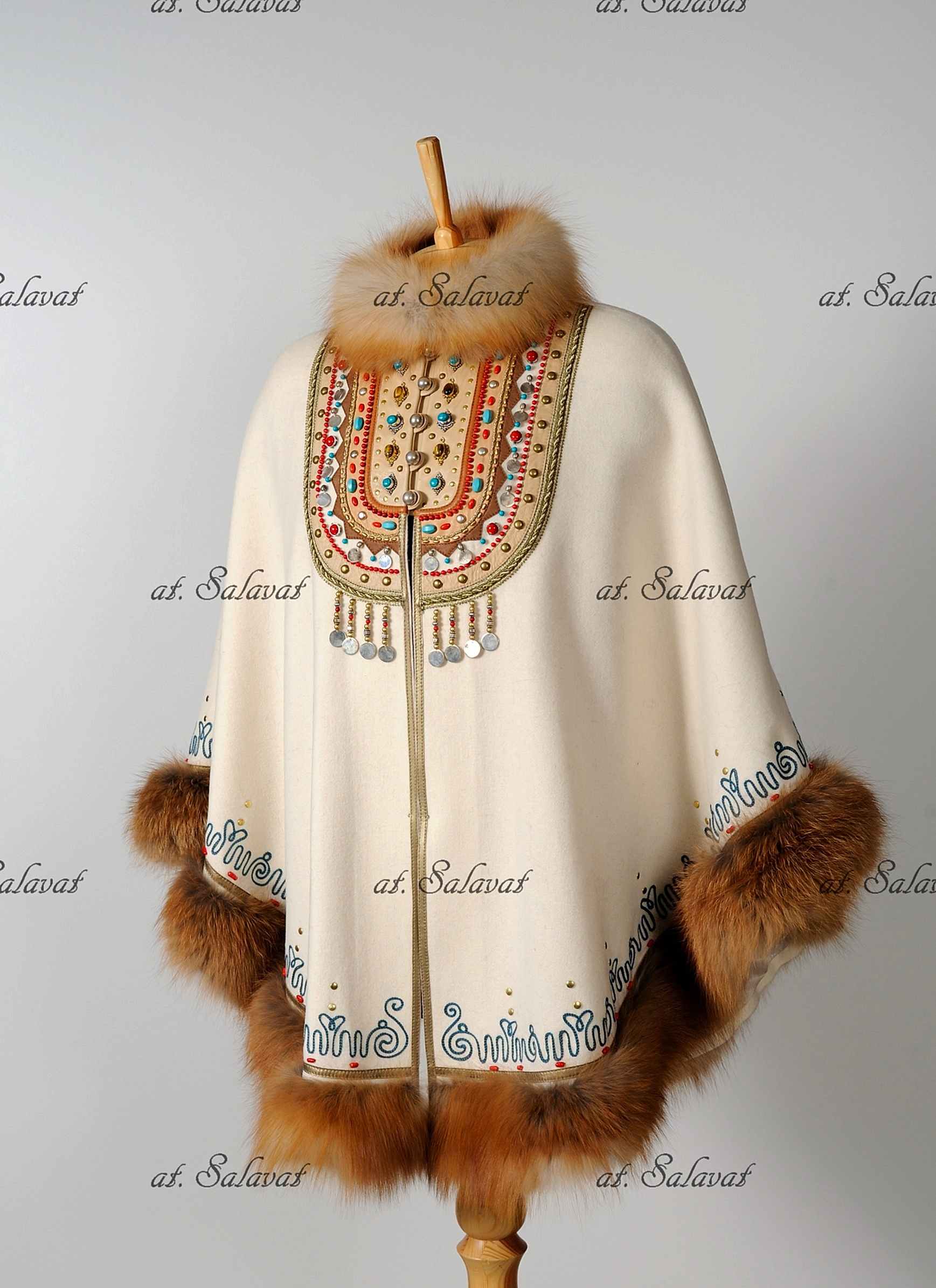 РаспроданоPin Up башкирский с орнаментом из белого английского сукна