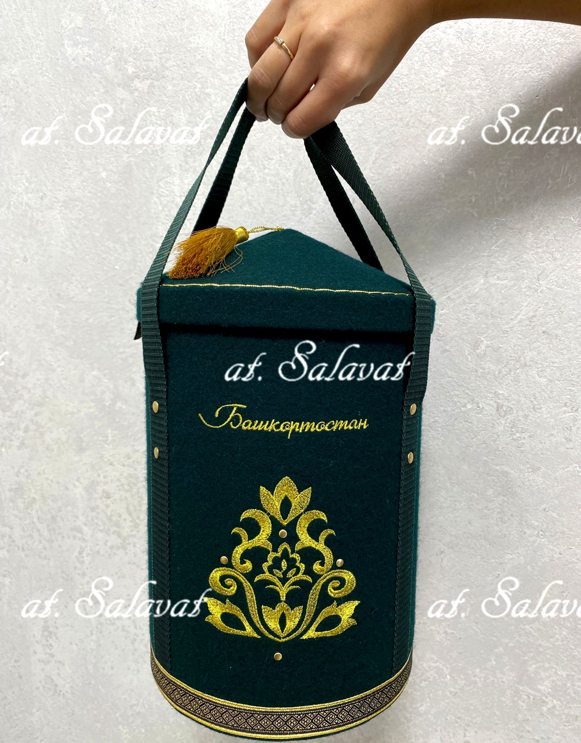 Особенностью традиций башкирского народа является кочевой образ жизни. К одним из самых ярких элементов относится традиционное жилище башкир - юрта. Имеет основание округлой формы и куполообразный свод. Именно эти формы отражены в нашей аутентичной упаковке «Юрта». Pin Up формы и имеет знаковую вышивку по всему изделию. Выполнена из натурального шерстяного сукна на шелковом стеганом подкладе с традиционной башкирской вышивкой.