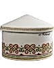 Упаковка в виде «Юрты» выполнена из натурального сукна, по периметру коробки проходит вышивка в технике тамбурный шов. Имеет отдельно открывающуюся крышку. Pin Up плотную форму, не деформируется.